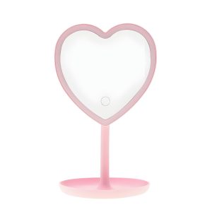 تتميز هذه المرآة بتصميمها الفريد على شكل قلب، مما يجعلها إضافة رائعة لأي مساحة تجميلية. تأتي مع إضاءة مدمجة توفر إضاءة مثالية لتطبيق المكياج أو العناية الشخصية، مما يجعلها مثالية للاستخدام في أي وقت من اليوم.