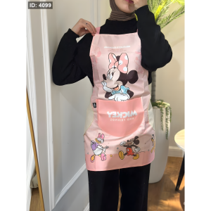 تأتي المريلة بتصميم ملون وجذاب يحمل شخصيات محبوبة مثل ميني وماكي، مما يضيف لمسة من المرح إلى مطبخك. فهي ليست فقط عملية، بل تضفي أيضًا لمسة من السعادة على تجربة الطهي لديك.