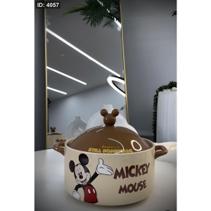 تصميم الغطاء المزود بتفاصيل ميني ماوس يضيف لمسة من المرح، مما يجعله مثاليًا للاستخدام اليومي أو كقطعة مميزة في تجميعات الخزف. سواء كنت تستخدمه للطهي أو التقديم، فإنه يجمع بين الوظيفة والجاذبية البصرية.