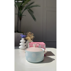 وعاء السيراميك هذا يجمع بين الأناقة والمرح، حيث يأتي بتصميم مستوحى من شخصية ميني ماوس الشهيرة. يتميز بلون أزرق فاتح ونقاط بيضاء، مما يجعله قطعة فريدة تضفي لمسة من الحيوية على أي مطبخ.