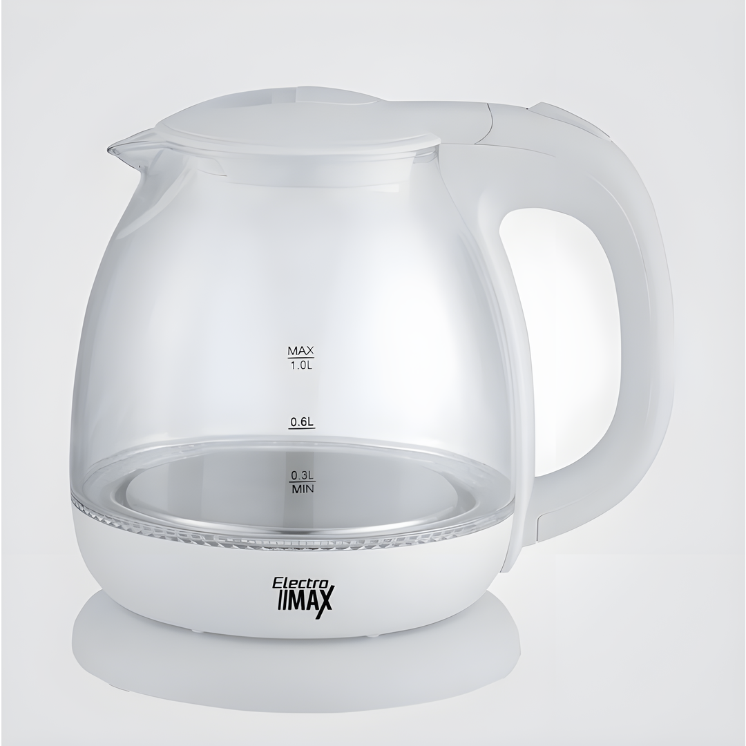 تتميز هذه الغلاية الزجاجية بتصميم عصري يجمع بين الجمالية والوظائف العملية. سعة 1 لتر تجعلها مثالية لتحضير الشاي أو القهوة بسرعة، مع إمكانية مراقبة مستوى الماء بوضوح من خلال الزجاج الشفاف.