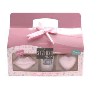 طقم قنابل استحمام وشمعة في علبة هدية ستايلوش